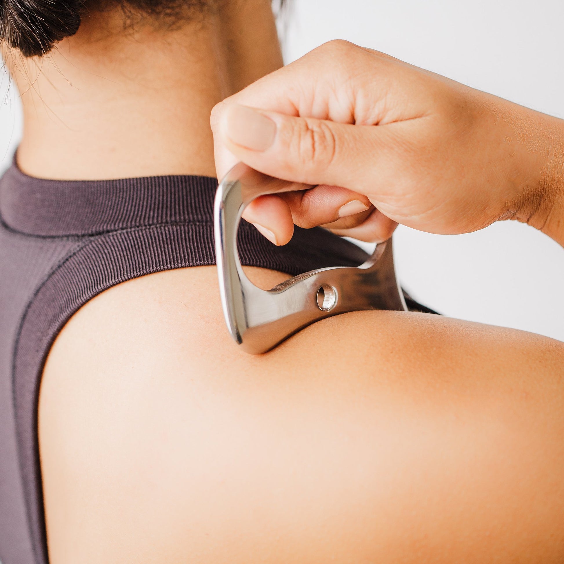 - Myofascial tool uses Gua Sha therapy to target, engage and alleviate specific meridian pathways, aiming to reduce discomfort.