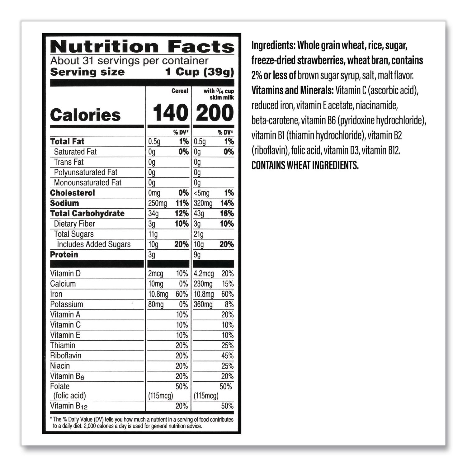 Start your day off right with the simple goodness of Kellogg's Special K Cereal with Berries, a deliciously crafted, wholesome cereal that loves you back with each healthy spoonful. This filling cereal is made with pleasantly sweet wheat and rice flakes enhanced with pieces of delicious strawberries, to satisfy your taste buds and energize you for the day ahead. Just as nutritious as it is delicious, this breakfast cereal is made with whole grain and provides a good source of fiber along with 11 essential vitamins and minerals to help keep you going strong. Not just for breakfast; you can add some of this tasty cereal to your yogurt for a snack at the office, enjoy it straight from the box after your workout, or use it as the base for a homemade trail mix. However you choose to enjoy it, Kellogg's® Special K® with Red Berries cereal helps you feed your strength with each irresistible bite.