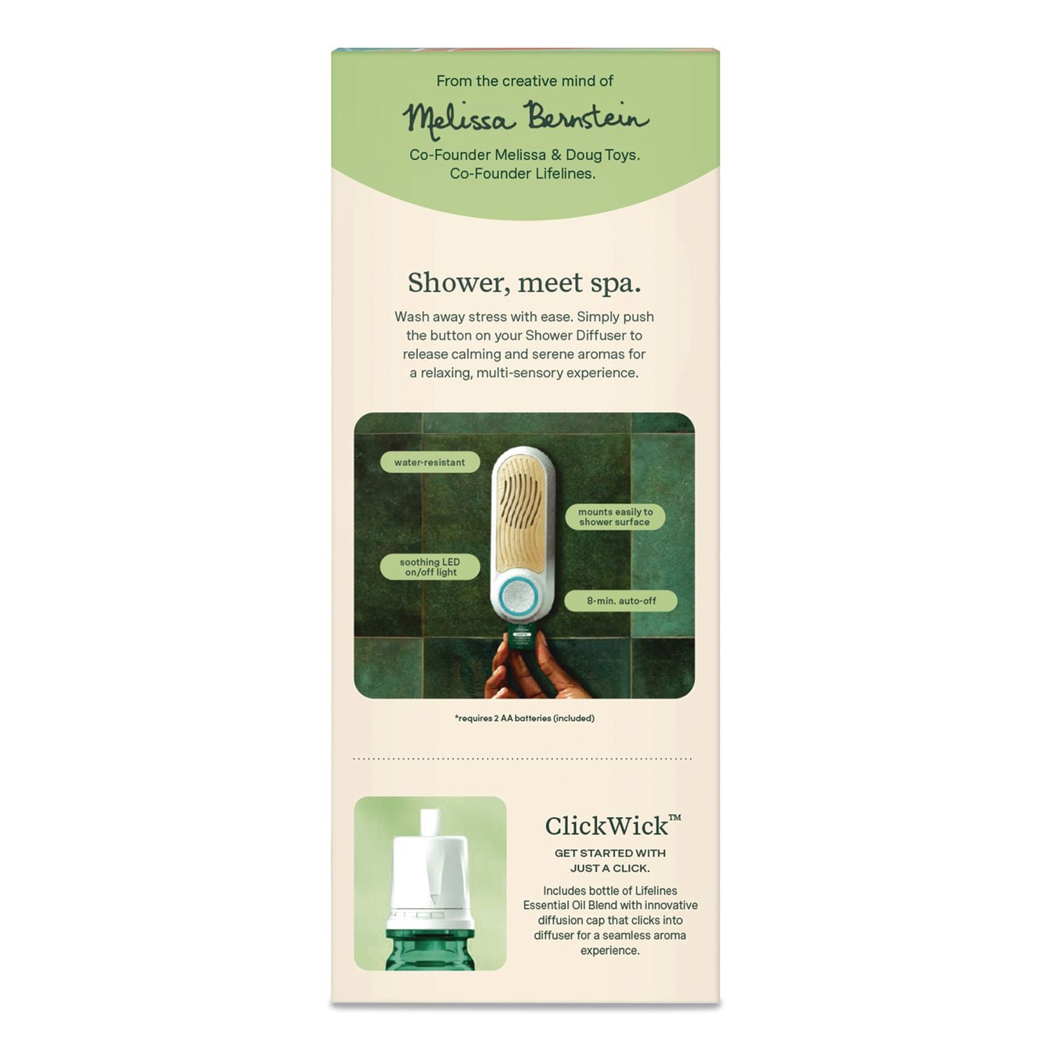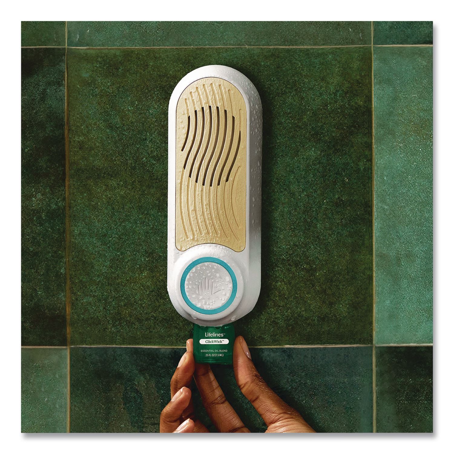 Energize your morning with the Lifelines® Shower Diffuser. A simple push of a button transforms your shower into a multi-sensory experience and lowers your stress before the day begins. Includes a bottle of Lifelines® Essential Oil Blend with innovative ClickWick™ diffusion cap that clicks into diffuser for a seamless aroma experience.
