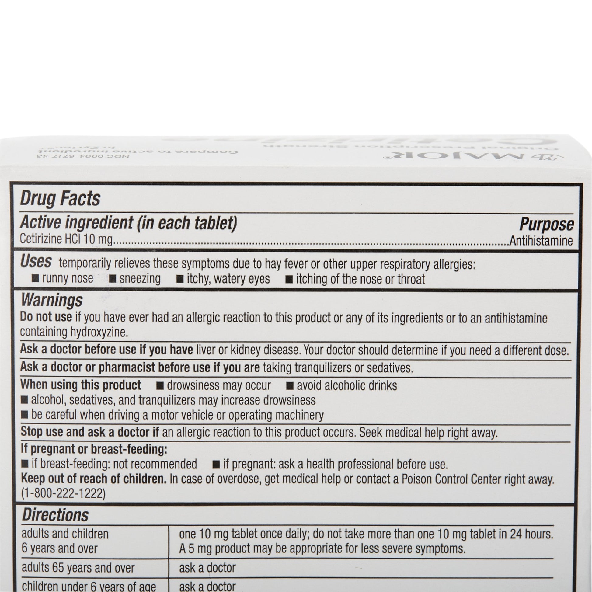 Major® Cetirizine HCl 10 mg Tablet 45 Tablets (1124063_BT)