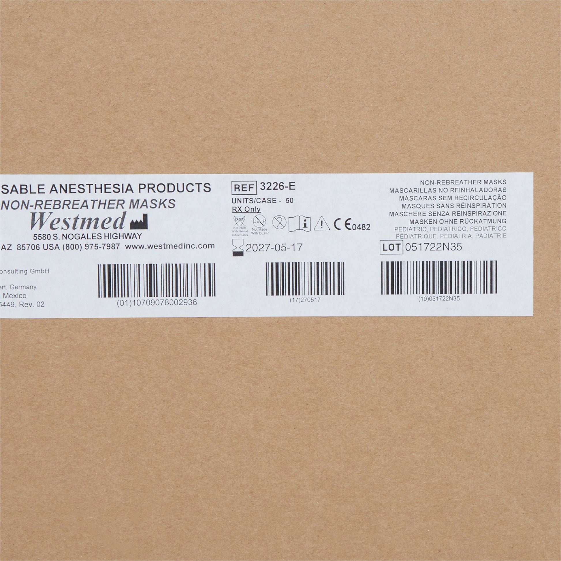 - Pediatric elongated non-rebreather oxygen mask with fits-all oxygen connector.