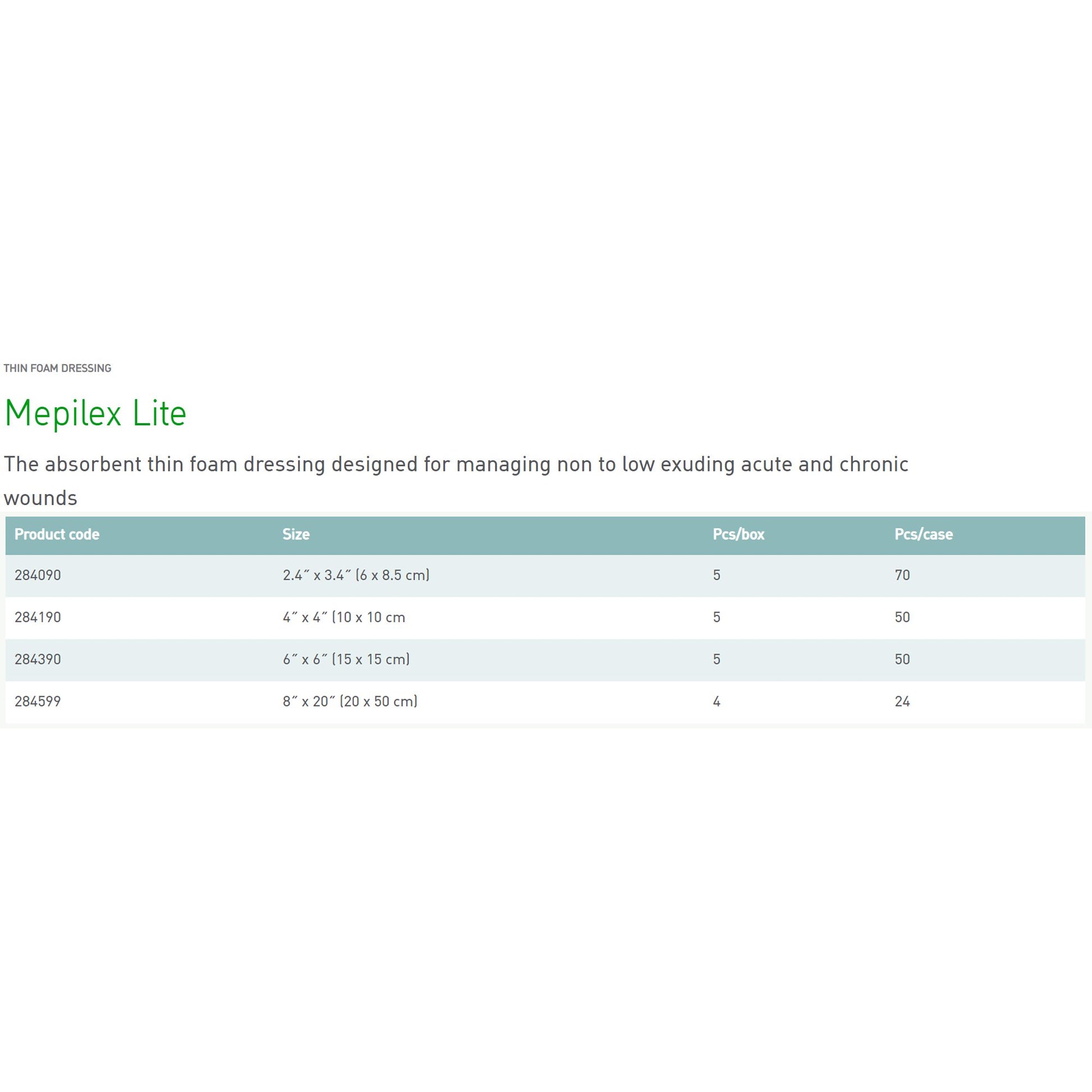 - Application: Thin Foam Dressing