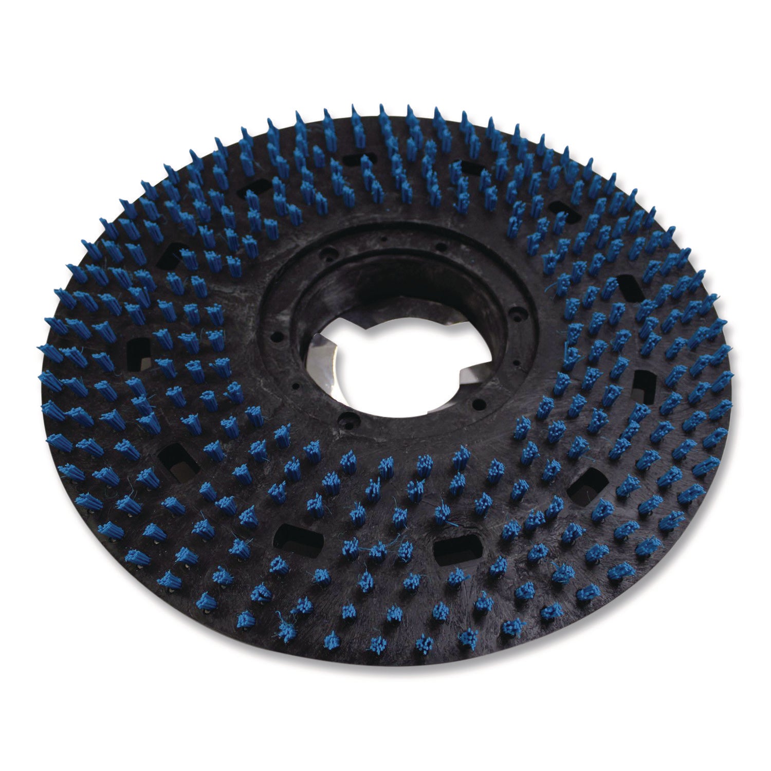 Made of polypropylene bristle material. It has a 0.5" riser for extra height clearance. The clutch plate attaches the brush block to the machine. Durable plastic plate with a standard 5" center hole is able to fit a wide variety of machines.