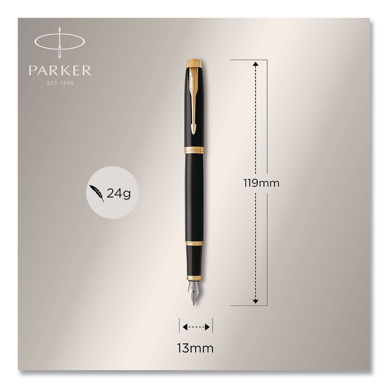Polished and professional, the Parker® IM® Fountain Pen is an ideal partner with unlimited potential. Its sleek, tapered barrel pairs seamlessly with its innovative design to make a striking statement. Crafted with an intense lacquered body accented with metallic trim and packed in a Parker® premium gift box, the IM® pen makes a memorable gift for anyone who'd wish to bring refined style to every writing occasion. Providing excellent control, the fine stainless-steel nib is shaped to ensure you always achieve the optimal writing angle. For use with Quink ink cartridges and convertible to ink bottle filling, every detail of the Parker® IM® Fountain Pen has been refined to deliver a writing experience that's faithful to the Parker® brand's more than 125-year heritage.