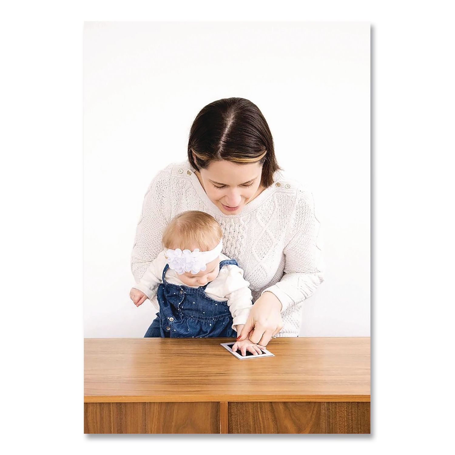 Capture and cherish your little ones prints forever with this pearhead® small size clean-touch ink pad. This ink pad achieves a highly detailed black print of your little one's hand or foot without ink ever getting on baby's skin! Absolutely no mess! To create an impression, make sure the ink is facing down on the included white card and press your baby's hand or foot onto the clean-touch ink pad. Your baby's tiny print will be left on the card without any ink on baby! Let the ink pad dry for one to two days before displaying. This set includes one clean-touch ink pad and two impression cards in case you need to redo the print. Each ink pad has a two-time use maximum and is for newborns only. It will accommodate hand/feet up to 2.25" x 3.5". Now you will always be able to remember how little your baby's piggies were and cherish them forever with the pearhead® Baby Clean-Touch Ink Pad.