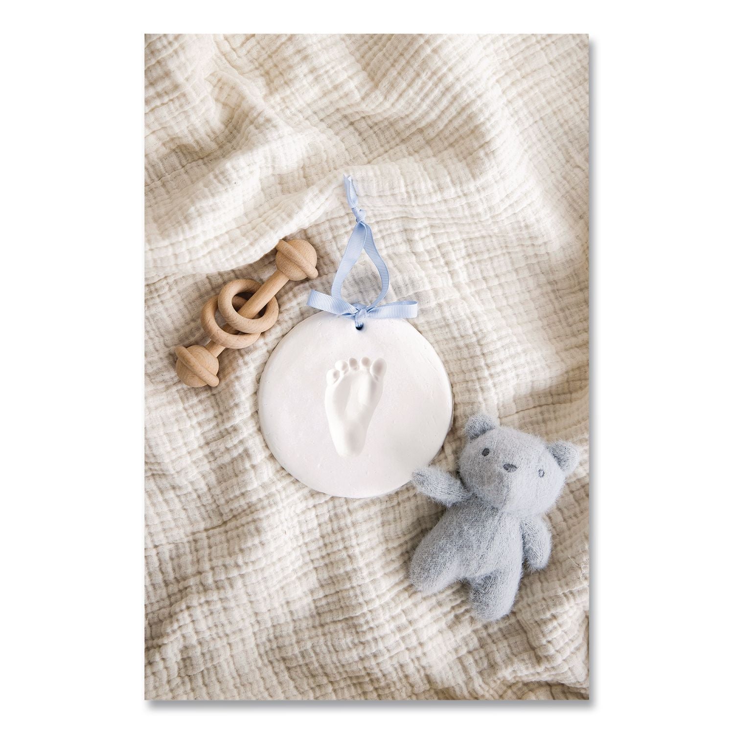 - Package Includes: 100% Baby-Safe Impression Material; Shaping Ring; Soft Pink Ribbon; Baby Blue Ribbon; White Ribbon; Pin