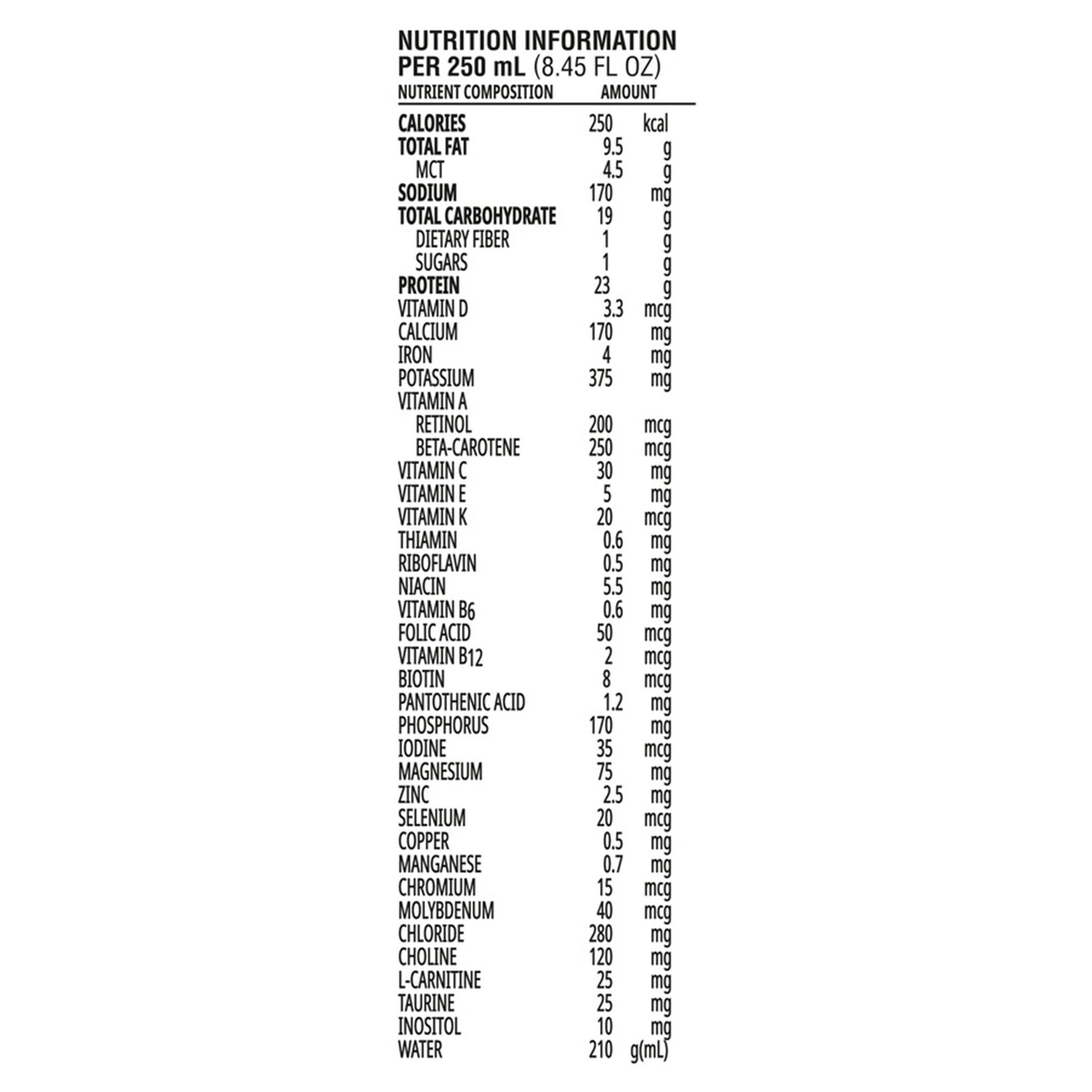 - Ingredients: WATER, ENZYMATICALLY HYDROLYZED WHEY PROTEIN (MILK), MALTODEXTRIN, AND LESS THAN 2% OF MEDIUM CHAIN TRIGLYCERIDES, CORNSTARCH, REFINED FISH OIL (ANCHOVY, SARDINE), VITAMINS AND MINERALS‡, FRUCTOOLIGOSACCHARIDES, SOY LECITHIN, SOYBEAN OIL, INULIN (FROM CHICORY), GUAR GUM, TAURINE, L-CARNITINE, VITAMINS AND MINERALS: MAGNESIUM CHLORIDE, CALCIUM CHLORIDE, CHOLINE CHLORIDE, SODIUM ASCORBATE, CALCIUM PHOSPHATE, SODIUM CITRATE, FERROUS SULFATE, ZINC SULFATE, DL-ALPHA TOCOPHERYL ACETATE, NIACINAMIDE, MANGANESE SULFATE, CALCIUM PANTOTHENATE, COPPER SULFATE, THIAMINE MONONITRATE, PYRIDOXINE HYDROCHLORIDE, RIBOFLAVIN, VITAMIN A PALMITATE, BETA-CAROTENE, FOLIC ACID, POTASSIUM IODIDE, CHROMIUM CHLORIDE, SODIUM SELENATE, SODIUM MOLYBDATE, VITAMIN K1, BIOTIN, VITAMIN D3, VITAMIN B12