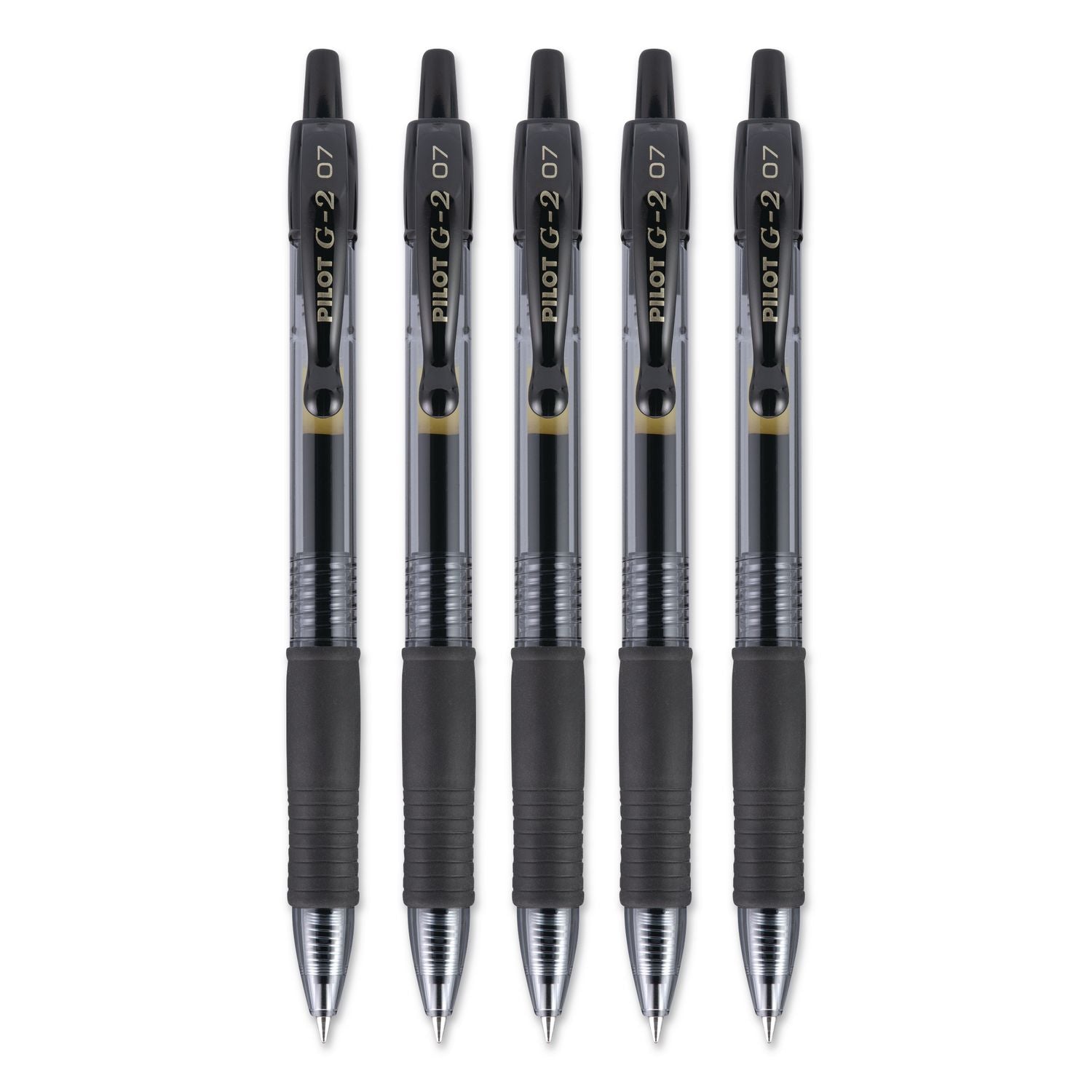 Pilot® G2 Premium Gel Pen, Retractable, Fine 0.7 mm, Black Ink, Smoke/Black Barrel, 5/Pack (PIL31078)