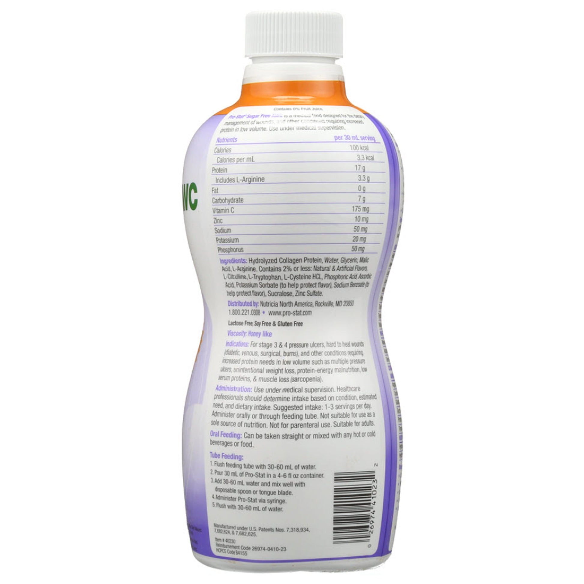 - This Pro-Stat protein supplement contains 17 grams of protein and 100 calories per serving to support wound healing.