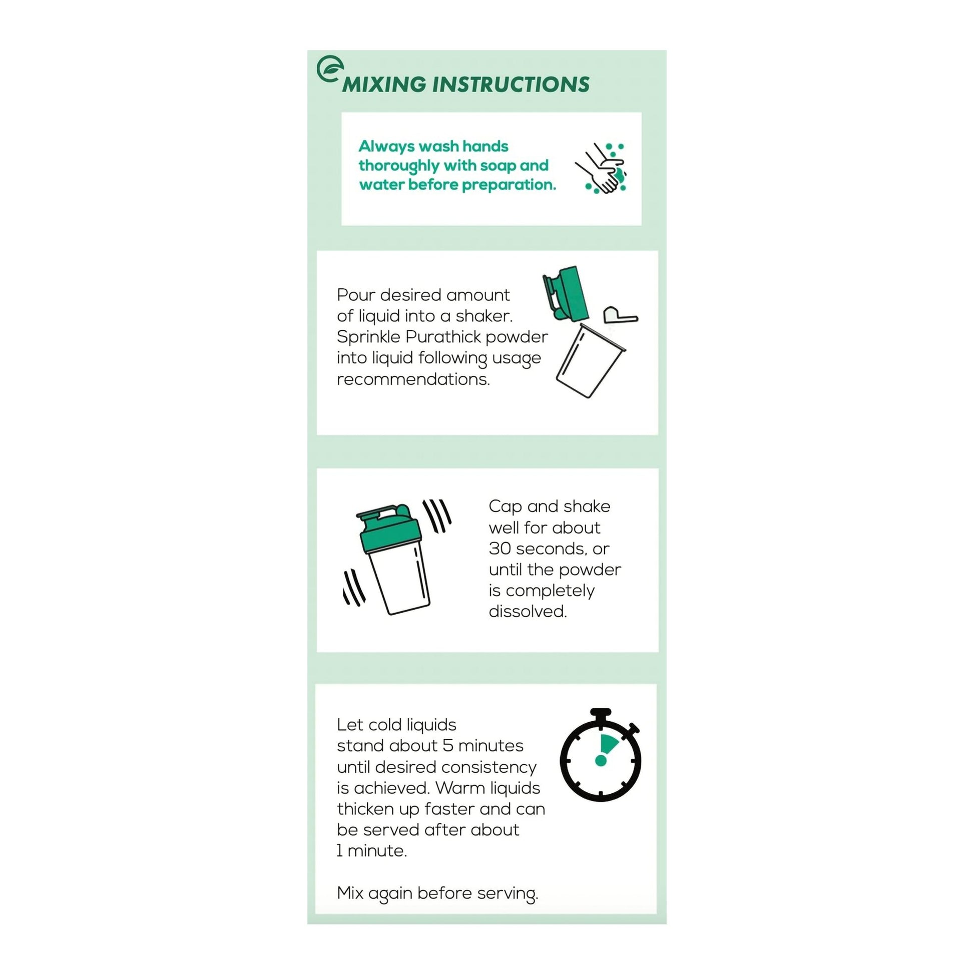 - Purathick Natural Thickener thickens hot and cold liquids for people requiring a modified diet, commonly recommended for people with swallowing difficulties, also known as dysphagia