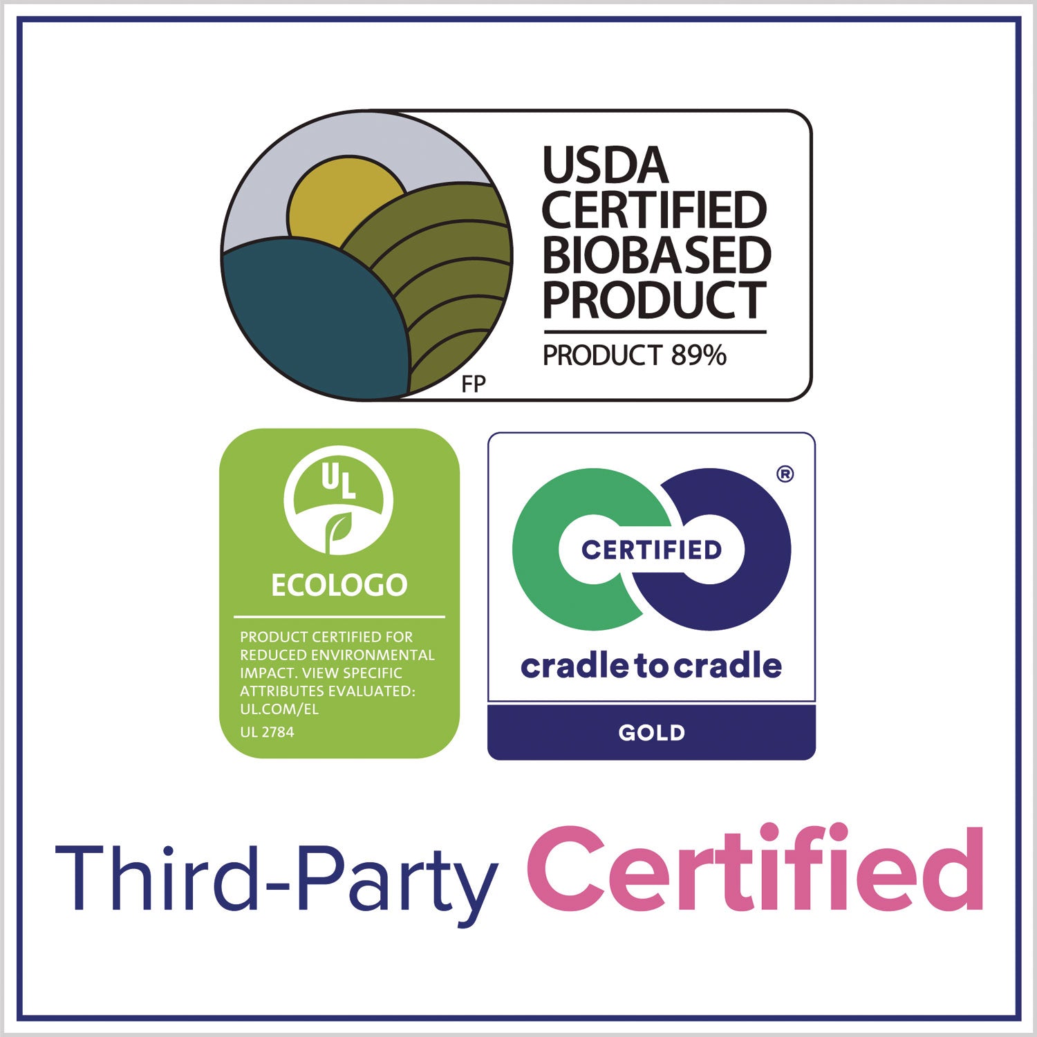 - Compliance Standards: Cradle to Cradle; EcoLogo Certified; USDA Certified Biobased 89%
