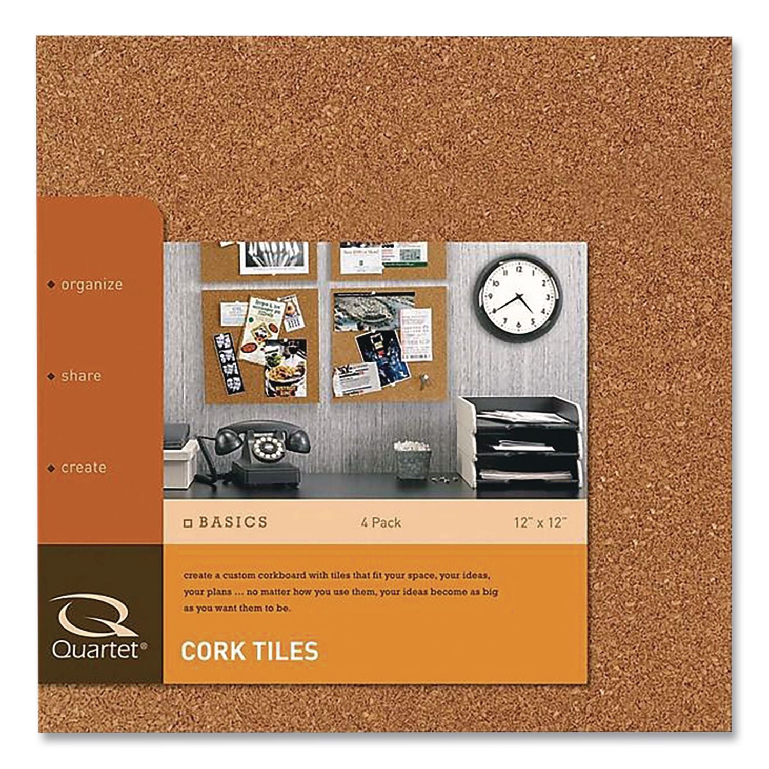 Quartet® Cork Bulletin Board Tiles, 1 ft x 1 ft, Brown Surface, Frameless, 4/Pack (QRT102)