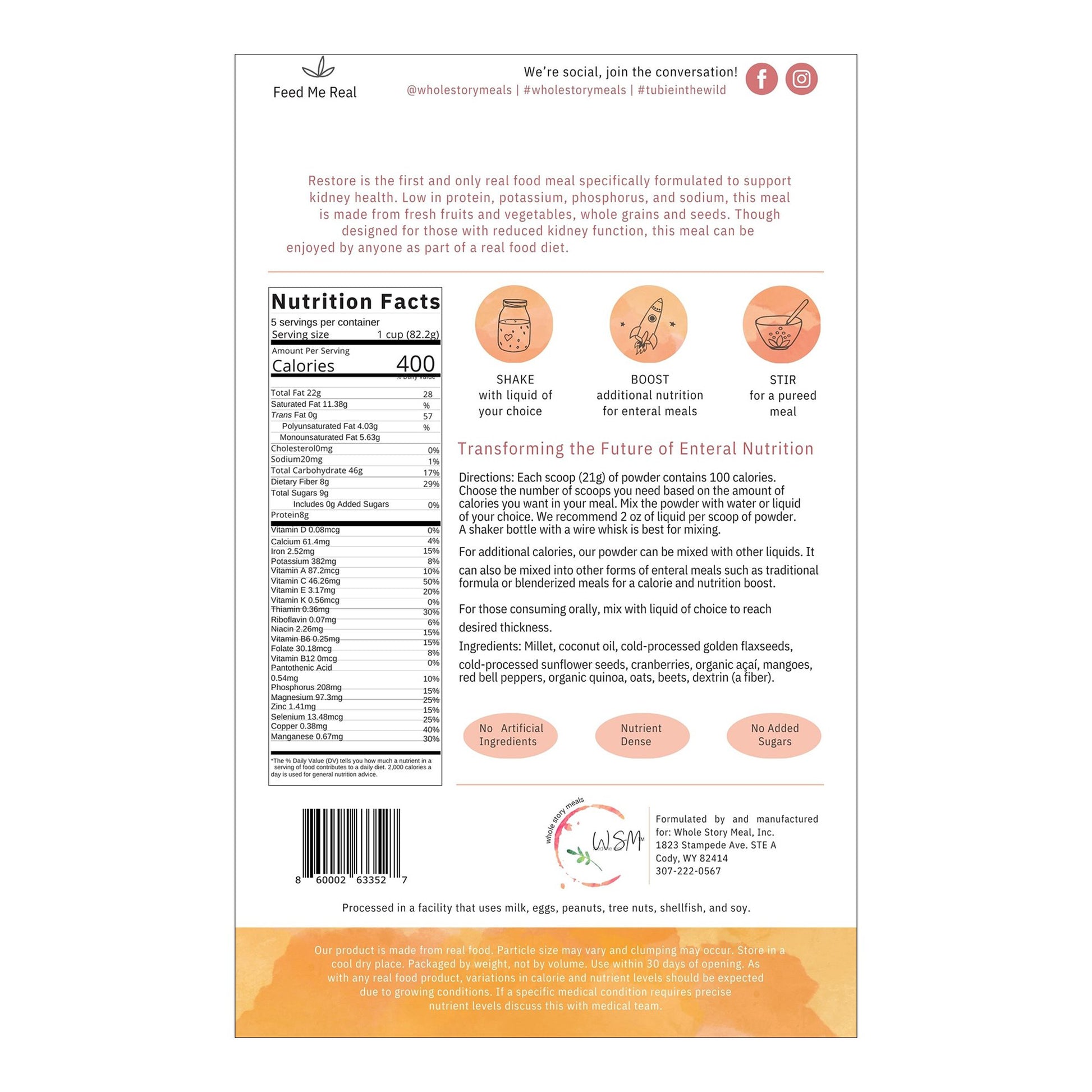 Restore Renal Support Oral Supplement Unflavored Powder 16 oz. Pouch (1223930_CS)