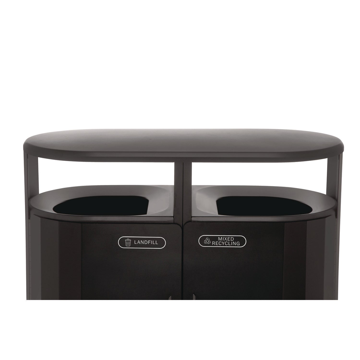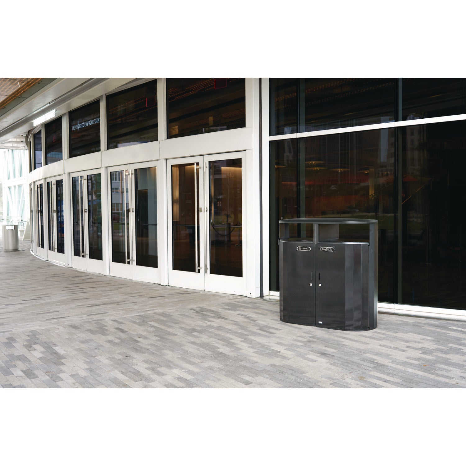 Rubbermaid® Commercial RESIST Dual Stream Waste and Recycling Container, 66 gal, Metal, Textured Black/Black Gloss (RCP2185042)
