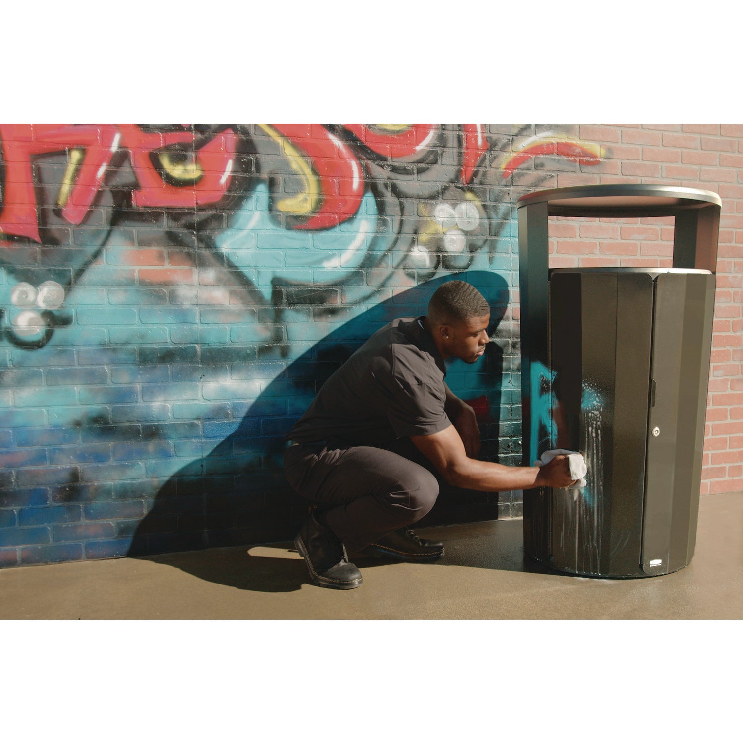 The Resist Round Waste Container is designed to maintain high-quality aesthetics under the most extreme outdoor conditions. Proprietary fan design resists up to 500 lbs of sustained blunt force. An advanced coating defends surfaces from graffiti and everyday stains. Special coating helps resist rust, corrosion and fading. The permanent rain hood prevents unwanted environmental debris from entering the container.