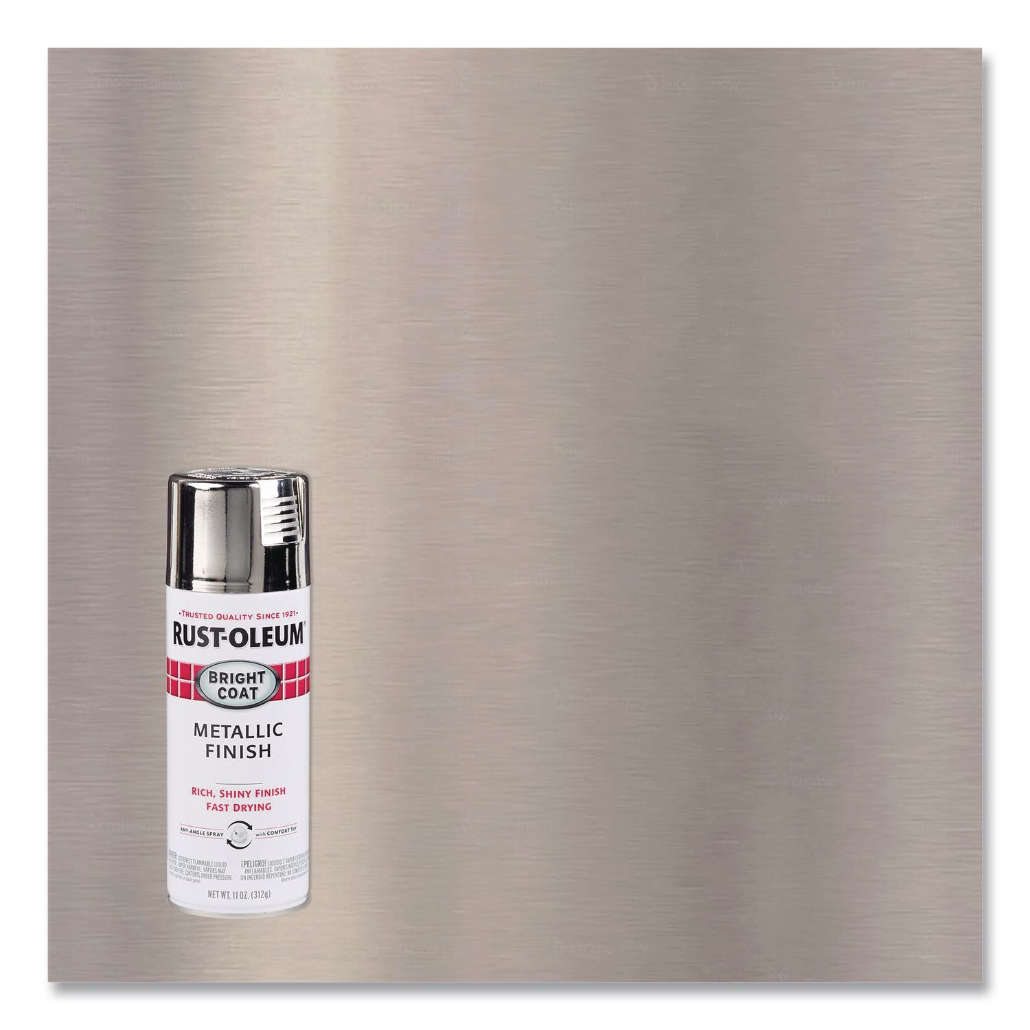 Rust-Oleum® Stops Rust® Bright Coat Spray Paints provide a shiny metallic finish. They feature a comfort tip with a wider finger pad to reduce fatigue caused by continuous spraying and an any-angle spray feature that allows you to spray in any direction, even upside down. These sprays apply easily, provide excellent coverage and dry fast for an attractive finish. Bright Coat Metallic sprays are designed for use on interior surfaces only. Avoid over handling.