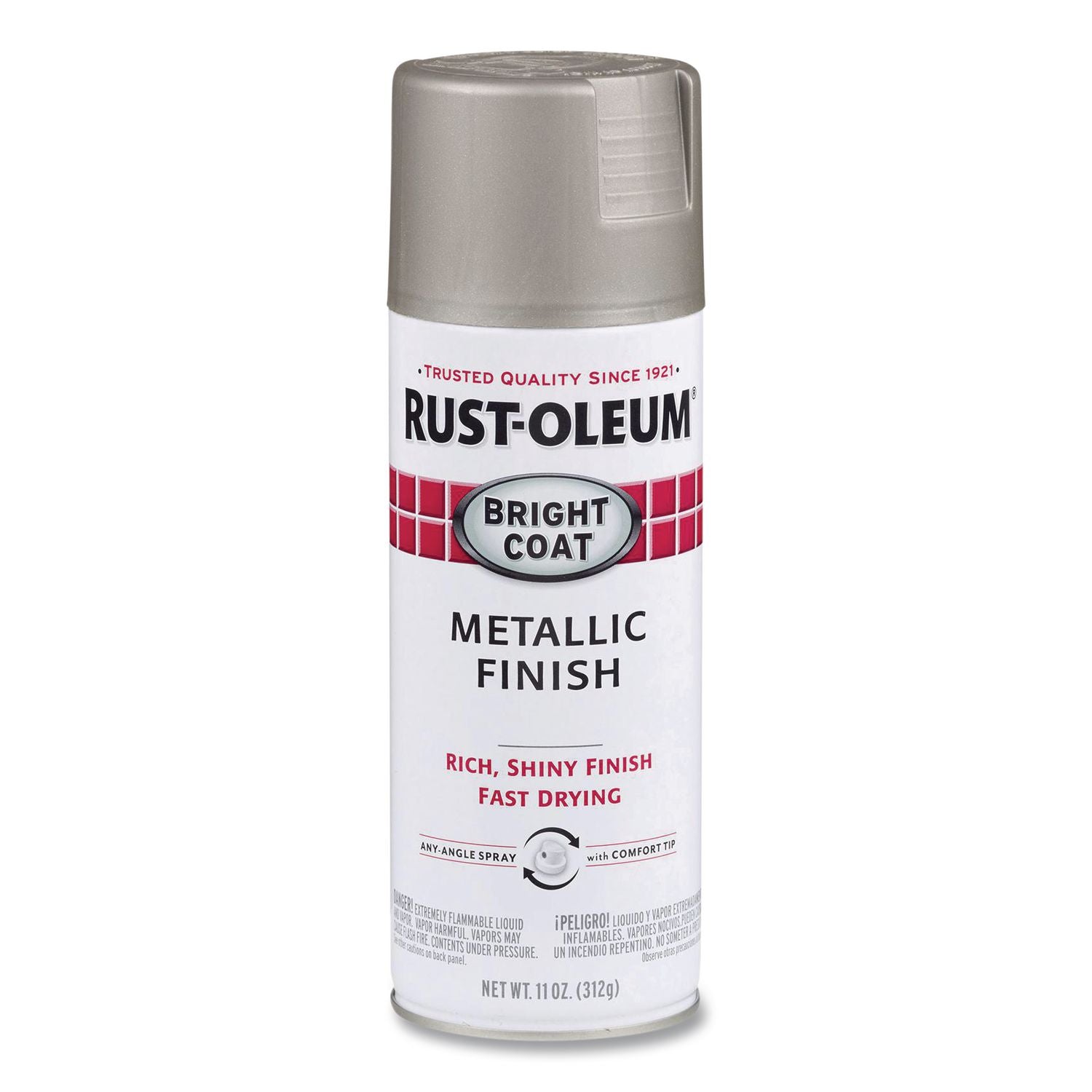 Rust-Oleum® Stops Rust® Bright Coat Spray Paints provide a shiny metallic finish. They feature a comfort tip with a wider finger pad to reduce fatigue caused by continuous spraying and an any-angle spray feature that allows you to spray in any direction, even upside down. These sprays apply easily, provide excellent coverage and dry fast for an attractive finish. Bright Coat Metallic sprays are designed for use on interior surfaces only. Avoid over handling.