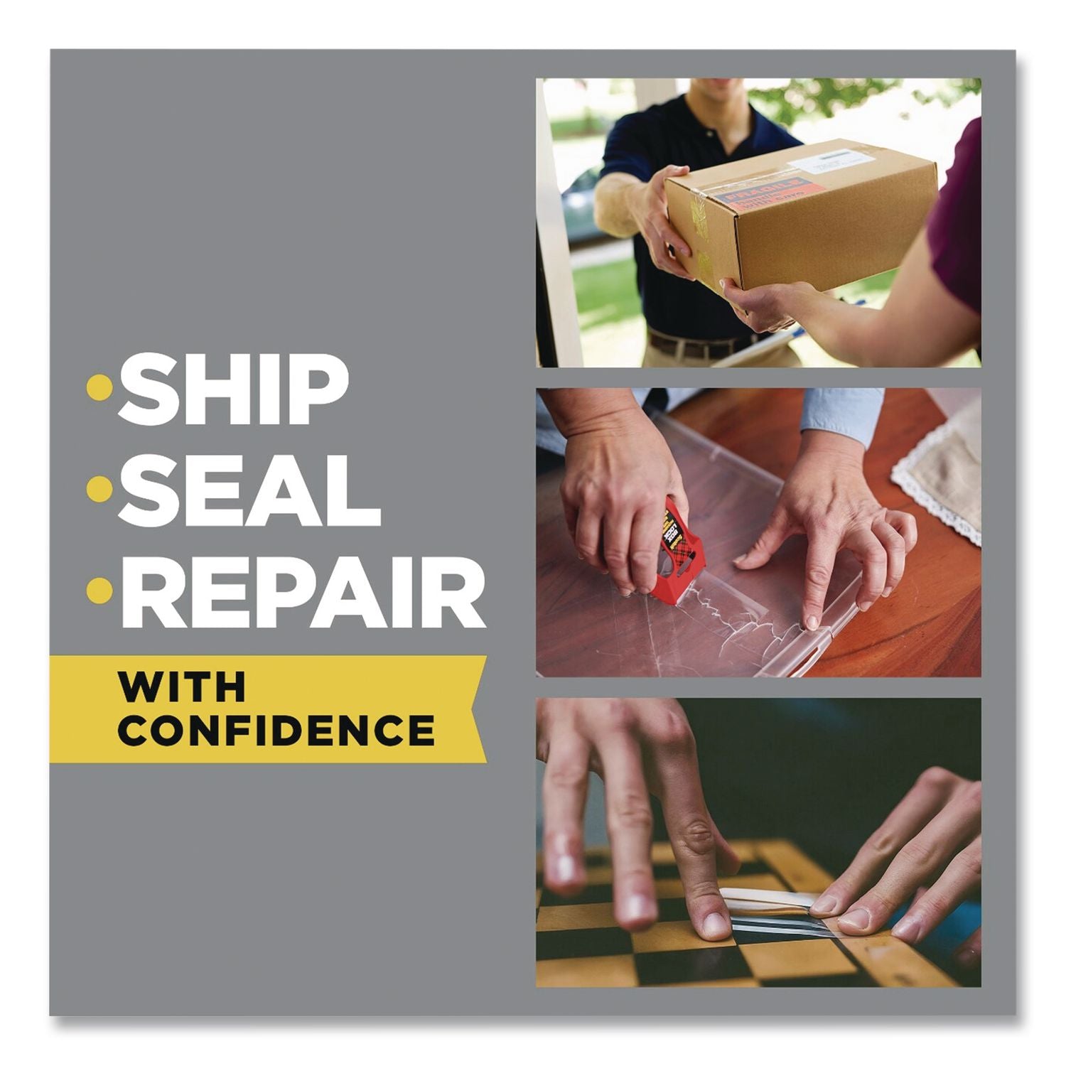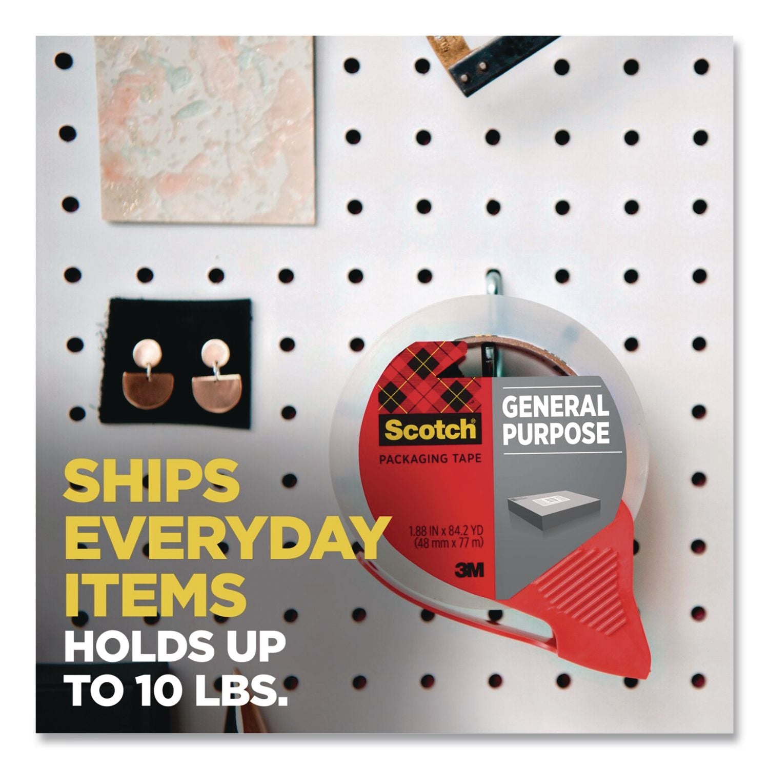 When the package you ship leaves your hands—it may get stacked, thrown and dropped. Make sure it's secure with this durable packaging tape. It was made for your lighter weight boxes and for general use around the house and office. When the tape goes on, it stays on—so your boxes stay closed as they travel across town or around the world. Its unique hot melt adhesive seals your lighter packages for their journey. The included refillable dispenser has fall back tabs to ensure the tape won't fall back on the roll.