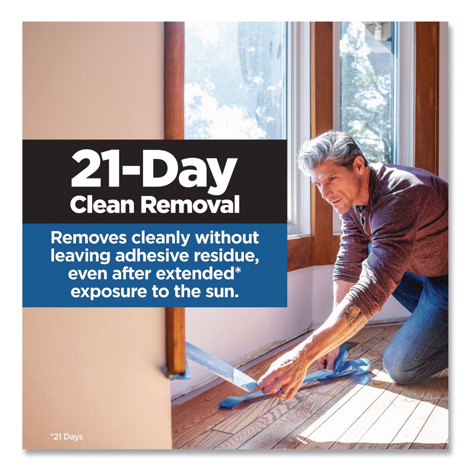 Provides our sharpest paint lines yet thanks to our new Edge-Lock+™ technology. Designed to handle both indoor and outdoor projects, this tape provides 2X better hold than our original Edge-Lock+™ technology, sealing out paint to leave consistently sharp lines across multiple paint types and finishes. Whether you're protecting drywall, trim, baseboards, painted walls, wood, tile flooring or glass windows, this versatile painting tape can stay on surfaces for up to 21 days and then remove easily without leaving any sticky residue behind, even after exposure to the sun.