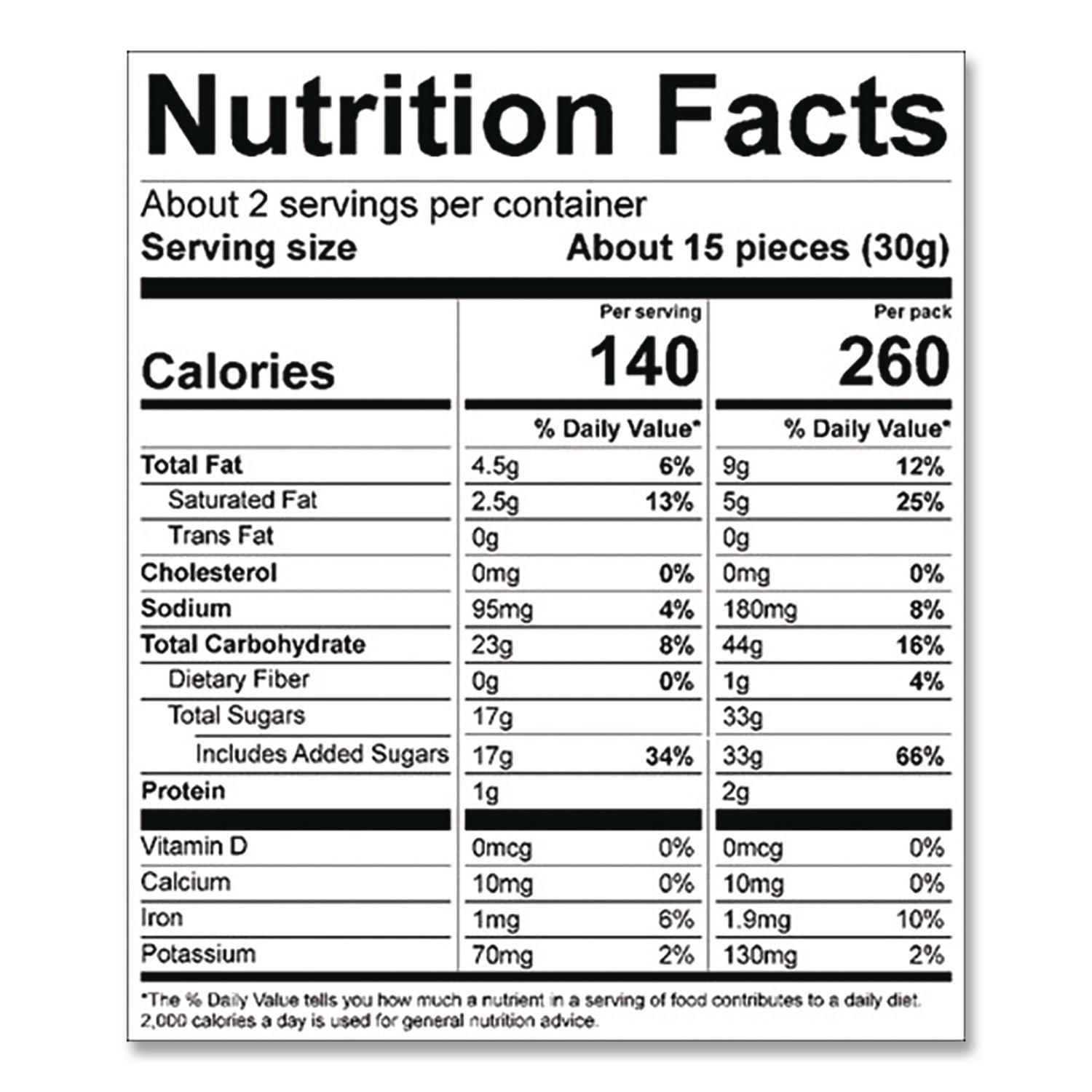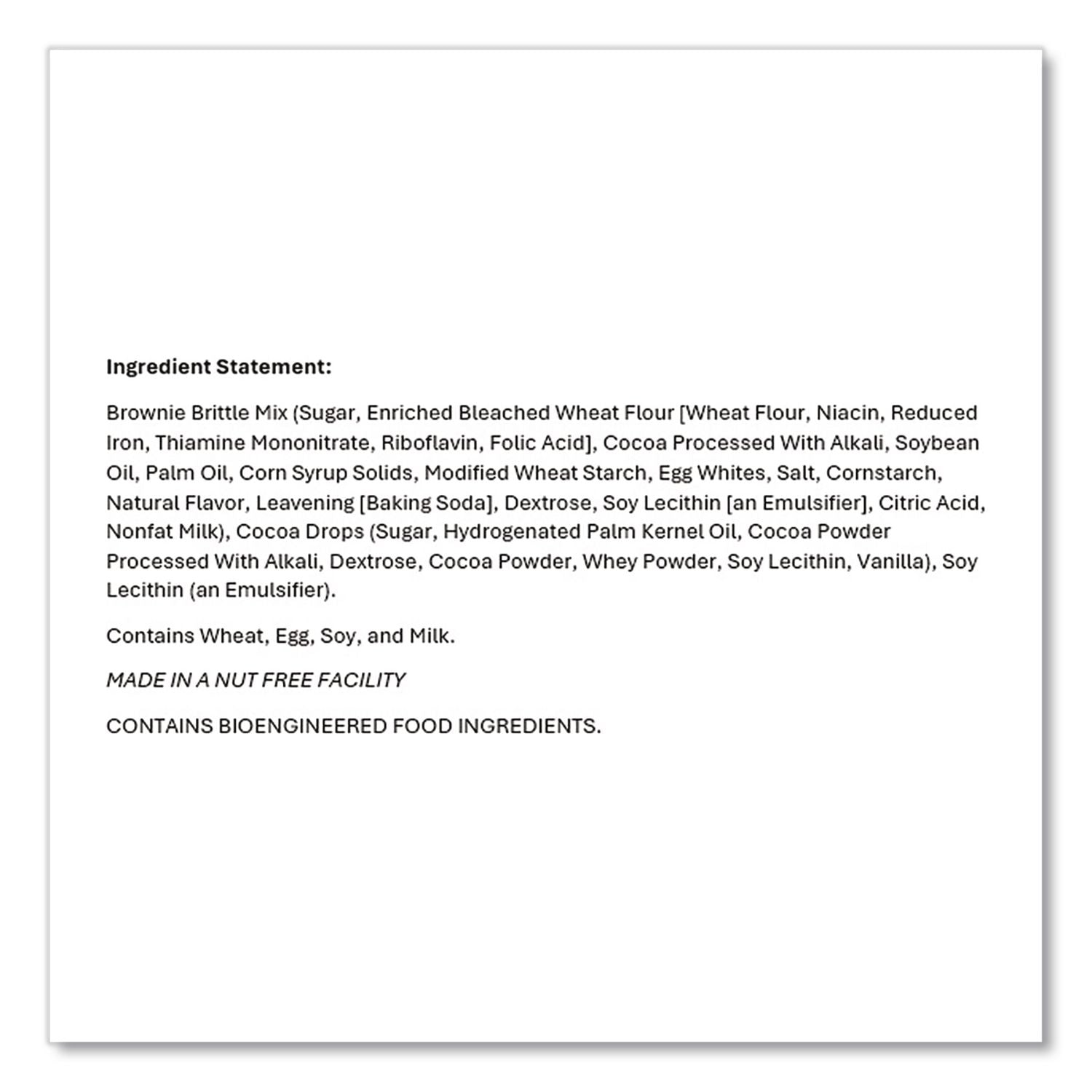 Indulge in the decadent flavor of Brownie Brittle™ chocolate chips snacks. Bite into this chocolate treat for a satisfying and memorable cookie-like crunch. Each piece of brittle is wafer-thin, letting you enjoy a light but crispy edge in every bite. Loaded with chocolate chips, each piece tastes like a gourmet brownie. Packaged in individual bags, these snacks are perfect for stocking break rooms or eating on the go.