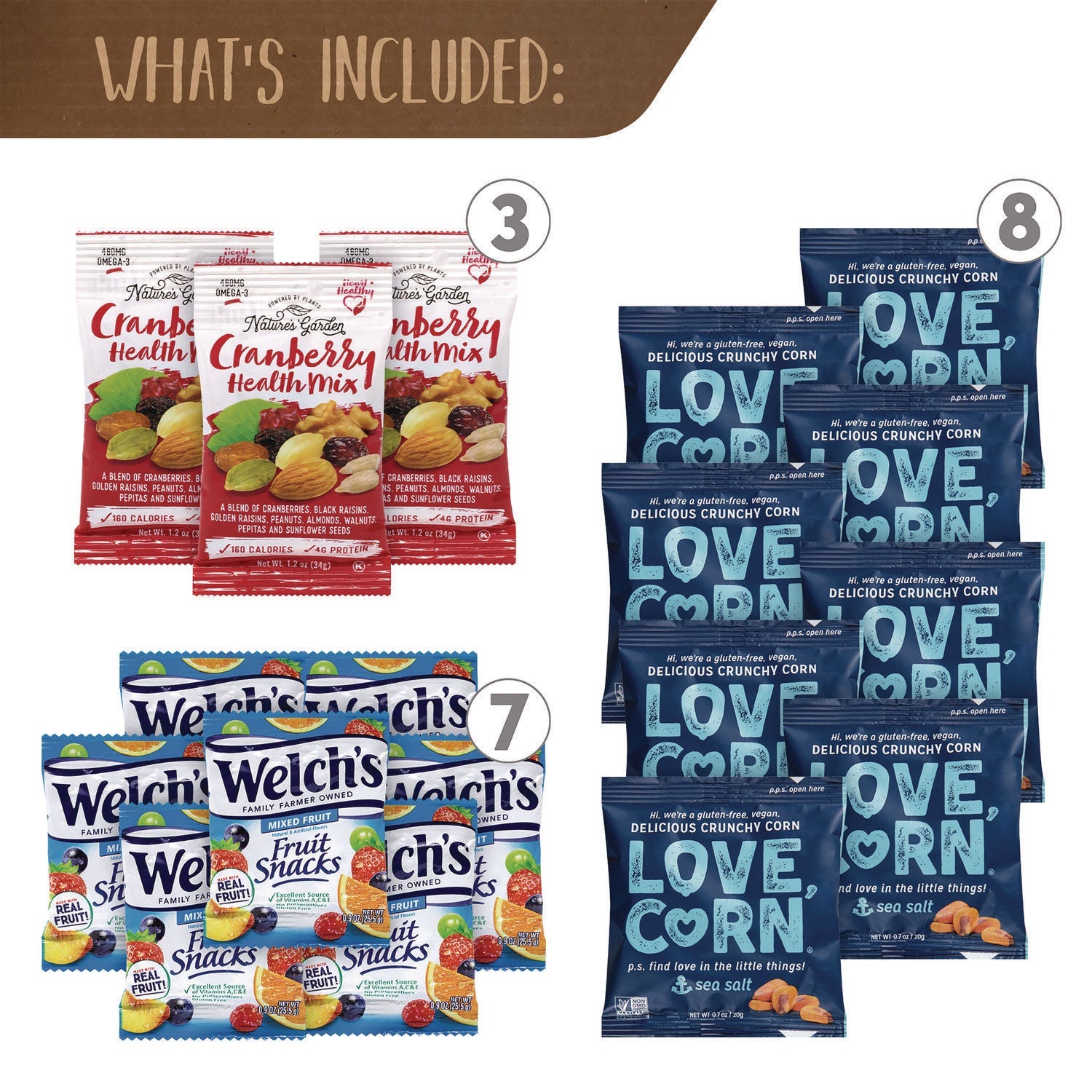 Better For You Snack Box allows you to enjoy all your favorite snacks without sacrificing the flavor. Great for sharing with coworkers or just hiding in your desk for delicious snack bars anytime of the day, the Better For You Snack Box is a great idea for the office or home! Products may vary by flavor per brand and substitutions may be made due to availability.