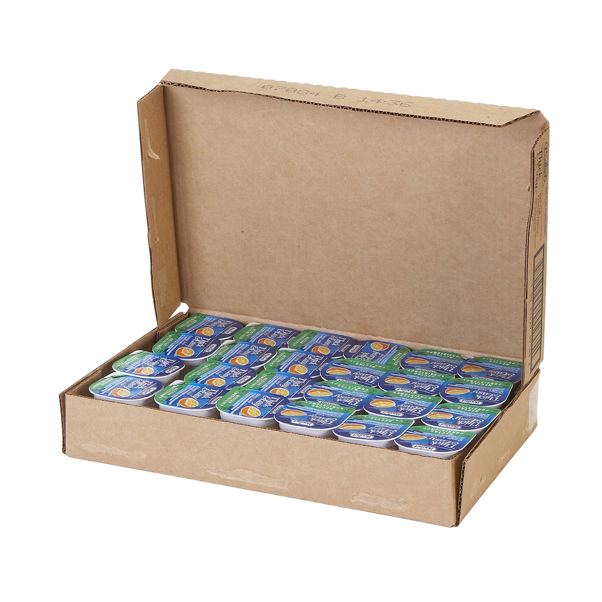 - The portion control cups have easy-peel foil barrier seals that remove quickly and cleanly, minimizing spills.