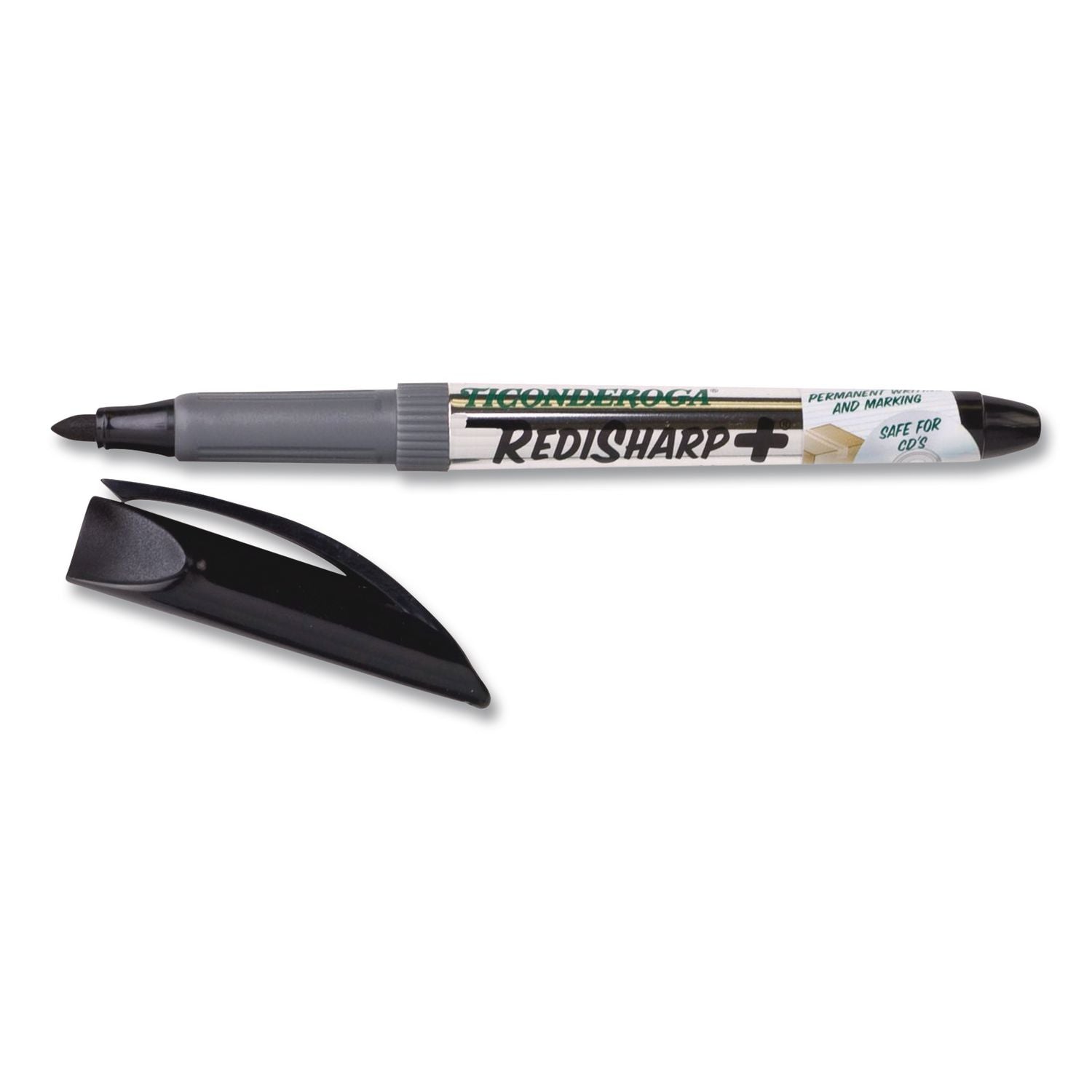Ticonderoga® RediSharp+ Permanent Markers, Fine Tip, Black (DIX98207EA)