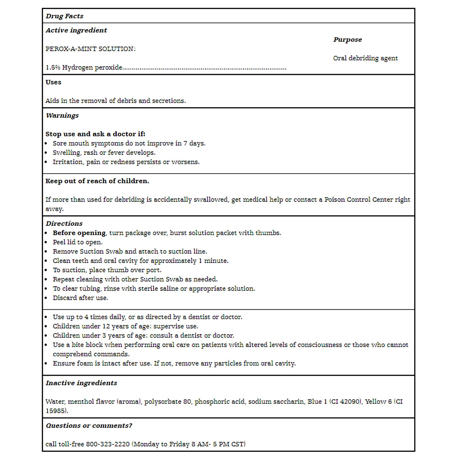 - 0.25 fl. oz. bottle of Perox-A-Mint® Solution to clean and refresh the mouth