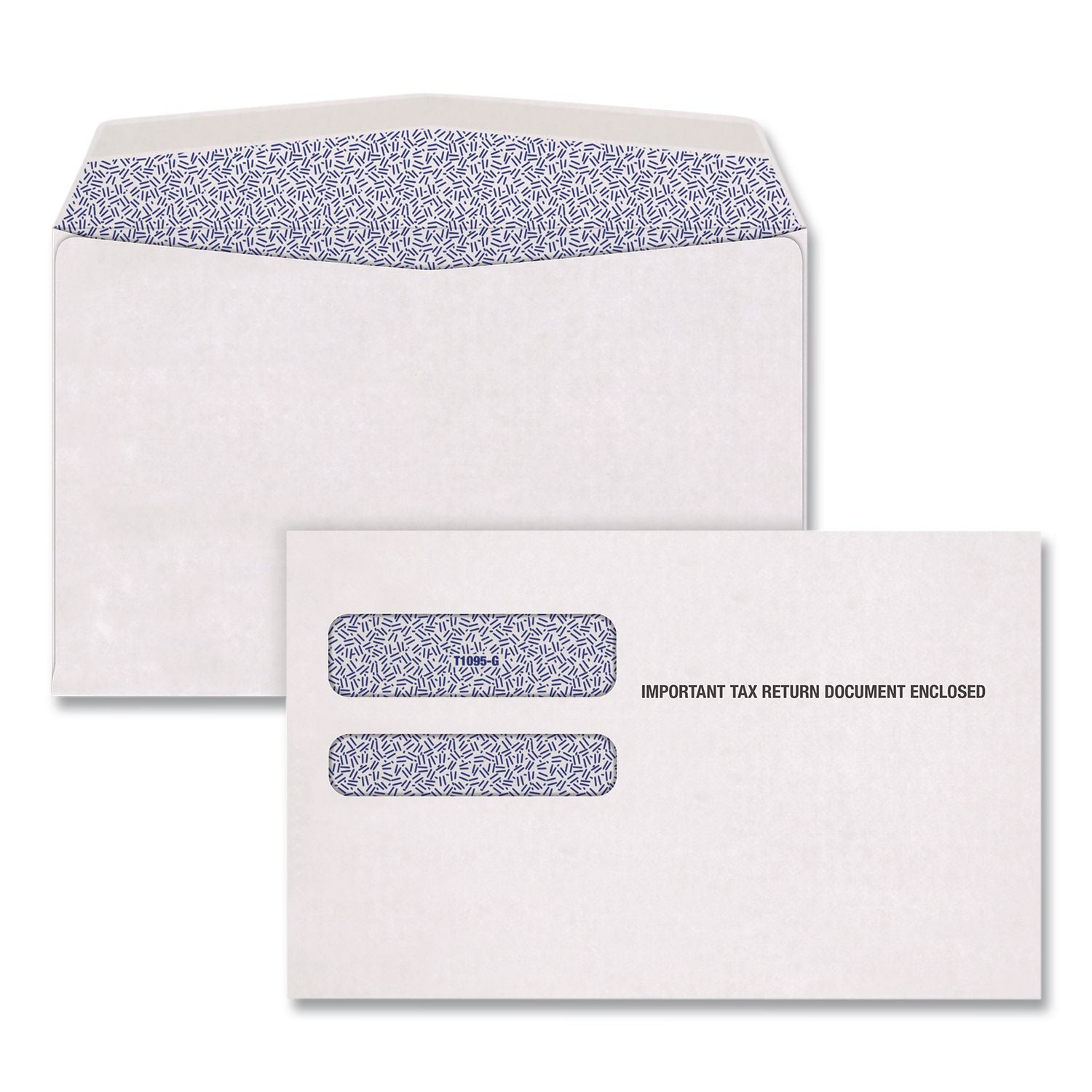 Protect sensitive tax forms with these tax envelopes. This envelope is designed to fit 1095-B and 1095-C Affordable Care Act tax forms. Features include double windows, gummed seal (moisture required) and a security tint to protect personal information.