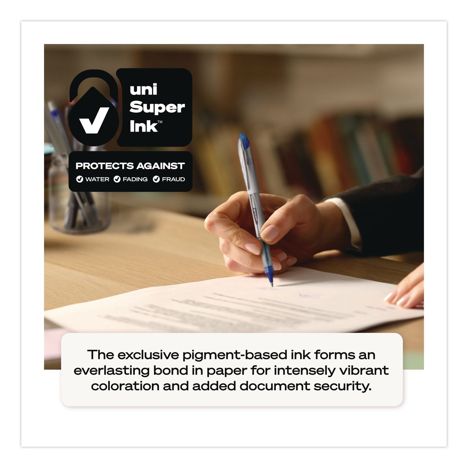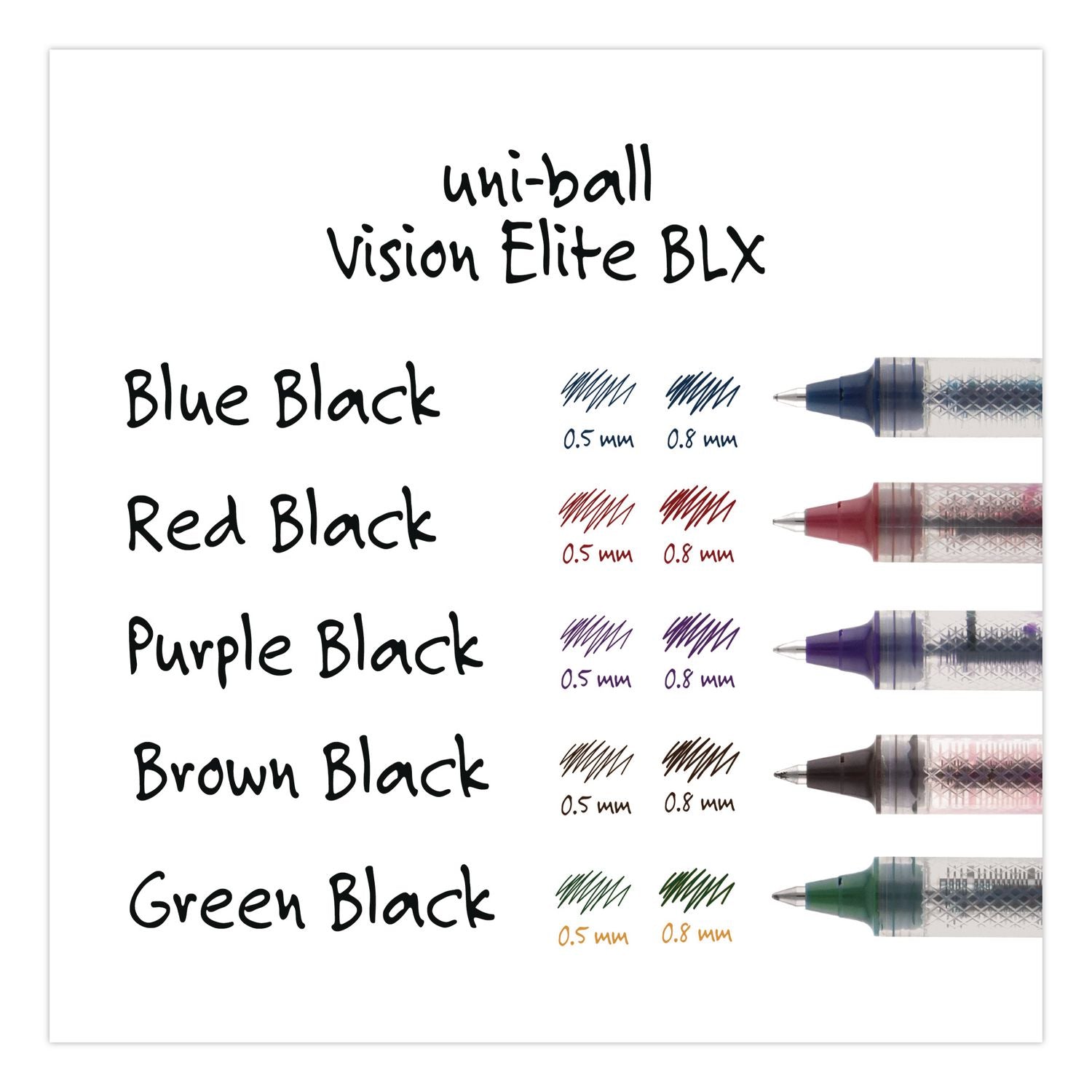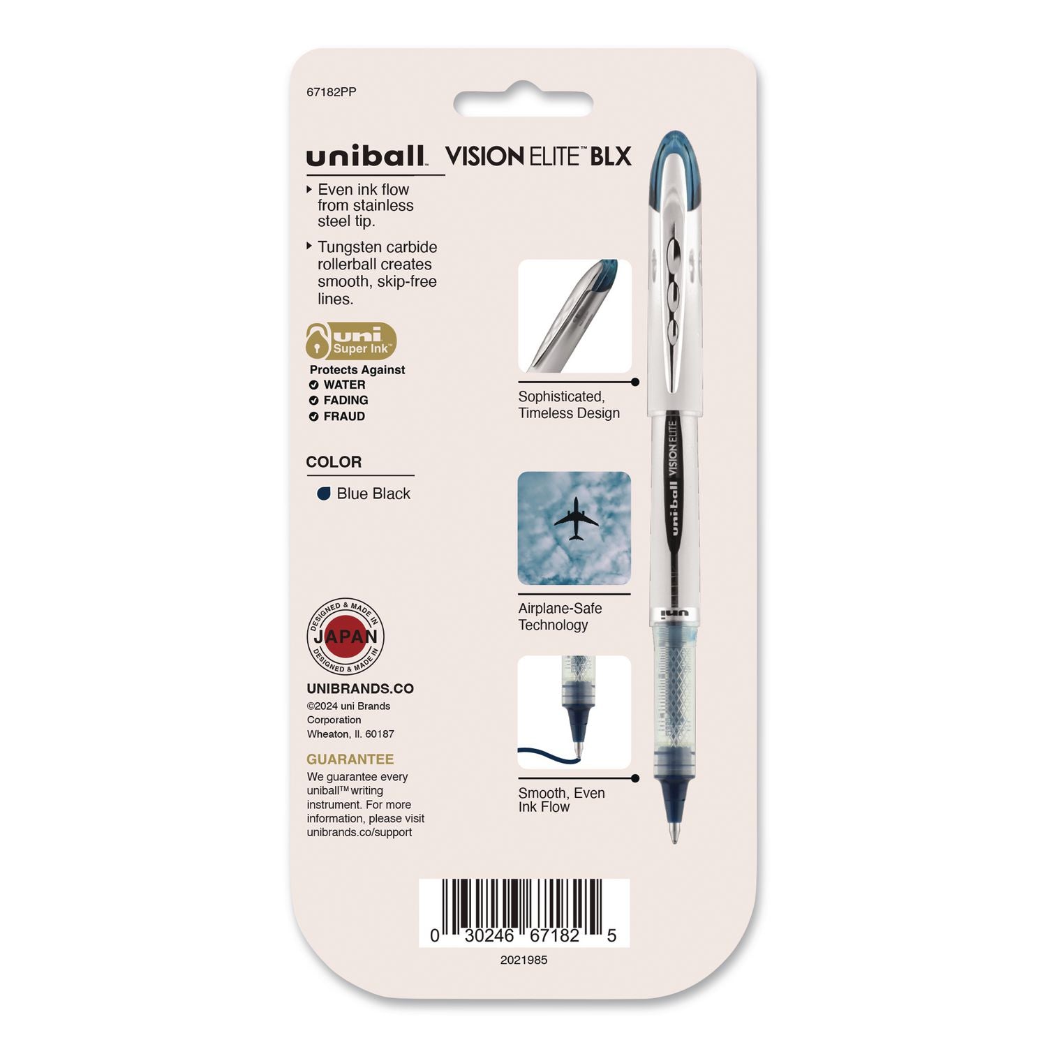 Give your writing a boldly infused flavor with Vision Elite BLX Rollerball Pens from uni-ball featuring a bend-resistant stainless steel tip and tungsten carbide rollerball. Capped roller pens deliver smooth, intense lines with unparalleled definition—useful for note taking, list making, signing checks and legal documents, and even uniquely embellishing creative writing projects. Innovative uni Super Ink technology effectively entraps the gel ink into the paper, producing fraud, fade and water-resistant documents that resist check washing or bleaching. These Vision Elite pens have a special design that withstands cabin pressure variances without leaking, making them useful for travelers. Exclusive Uni-Flow Ink System ensures a consistent, delightfully fluid writing experience, and a translucent window ensures that you don't run out of ink unexpectedly. These sleek and modern roller pens come in an assortment of black ink infused colors, adding an element of drama to your every day tasks and creative writing projects no matter the altitude.