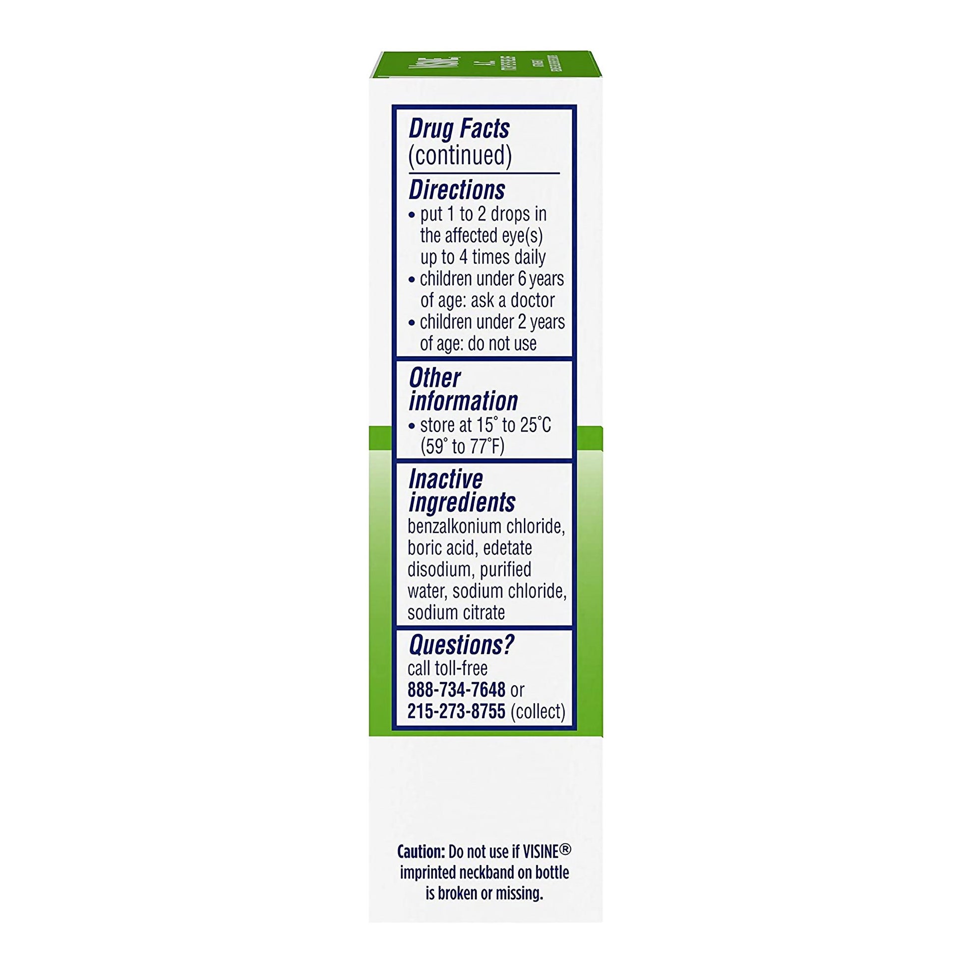- Active ingredients: 0.05% tetrahydrozoline HCI (redness reliever); 0.25% zinc sulfate (astringent)