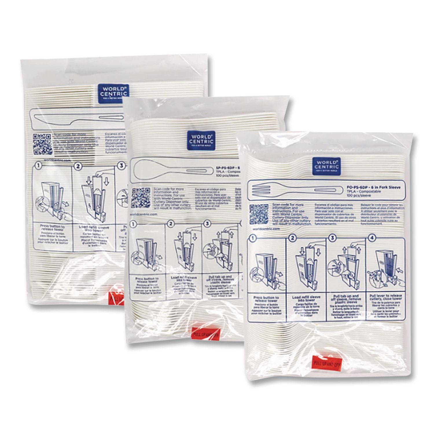 World Centric®'s Touchless Cutlery Dispenser Towers work with our specially designed compostable white cutlery made from TPLA, a bio-based plastic made from plant sugars and minerals. Customize your dispenser with any combination of three towers. The dispenser creates a clean, easy way for customers to access the utensils they need in your establishment, while advancing your sustainability goals. Cutlery sleeves sold separately. As a certified B Corporation, World Centric® is dedicated to upholding the highest standards of social responsibility, sustainability, transparency and accountability. We proudly give 25% of our profits to grassroots organizations driving global change. Choose World Centric® compostable foodservice products and make a difference today!