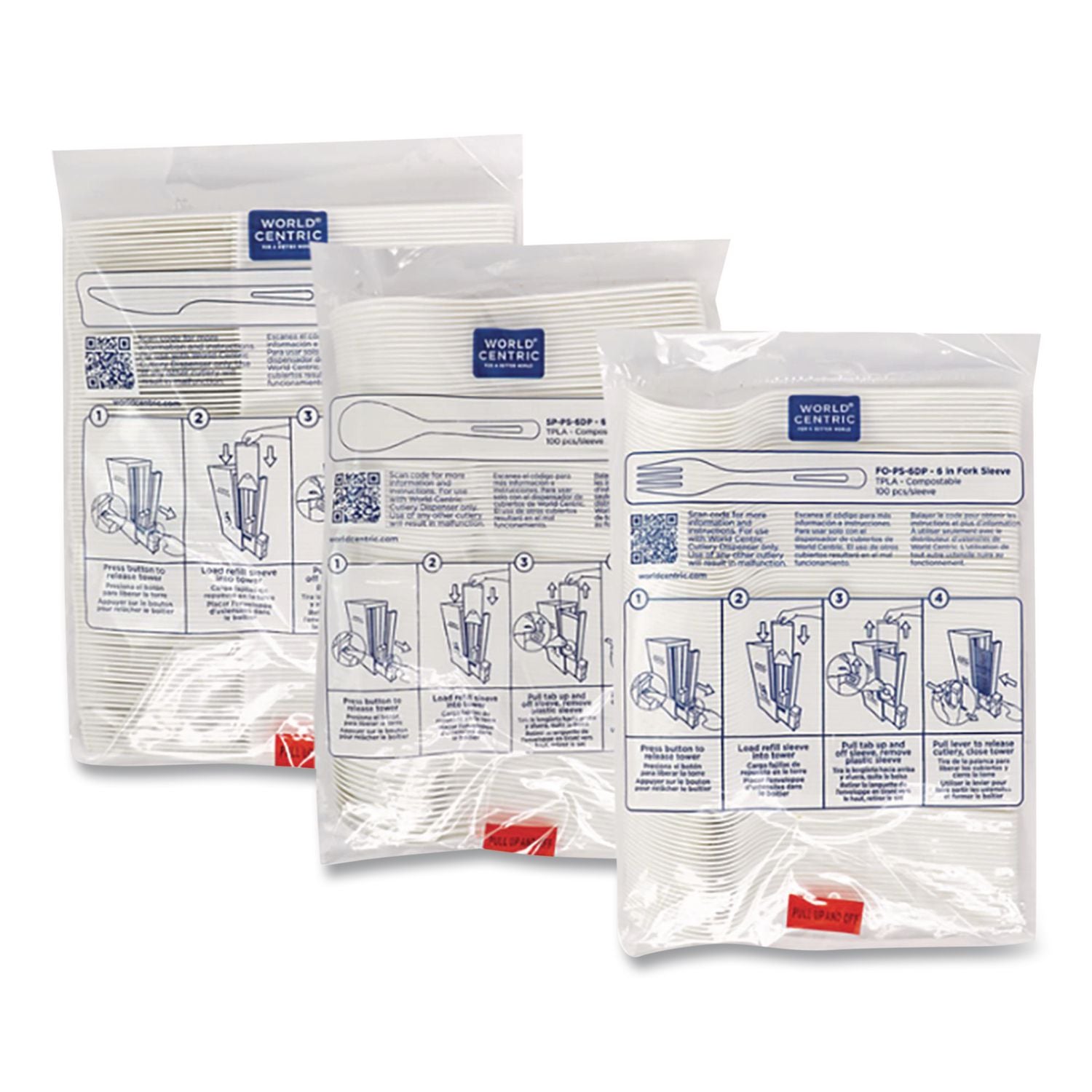World Centric®'s Touchless Cutlery Dispenser Towers work with our specially designed compostable white cutlery made from TPLA, a bio-based plastic made from plant sugars and minerals. Customize your dispenser with any combination of three towers. The dispenser creates a clean, easy way for customers to access the utensils they need in your establishment, while advancing your sustainability goals. Cutlery sleeves sold separately. As a certified B Corporation, World Centric® is dedicated to upholding the highest standards of social responsibility, sustainability, transparency and accountability. We proudly give 25% of our profits to grassroots organizations driving global change. Choose World Centric® compostable foodservice products and make a difference today!