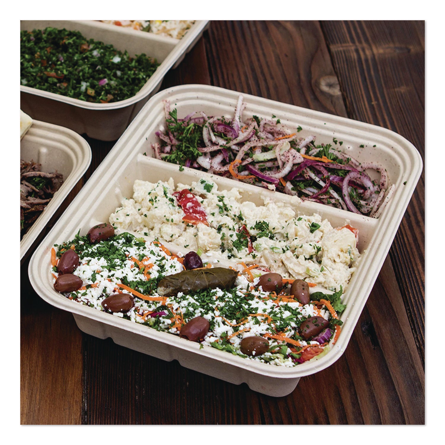 World Centric® Fiber Catering Pans, 3 Compartments, 10.3 x 2.8 x 12.8, Paper, Natural, 200/Carton (WORCASC104TLLF)