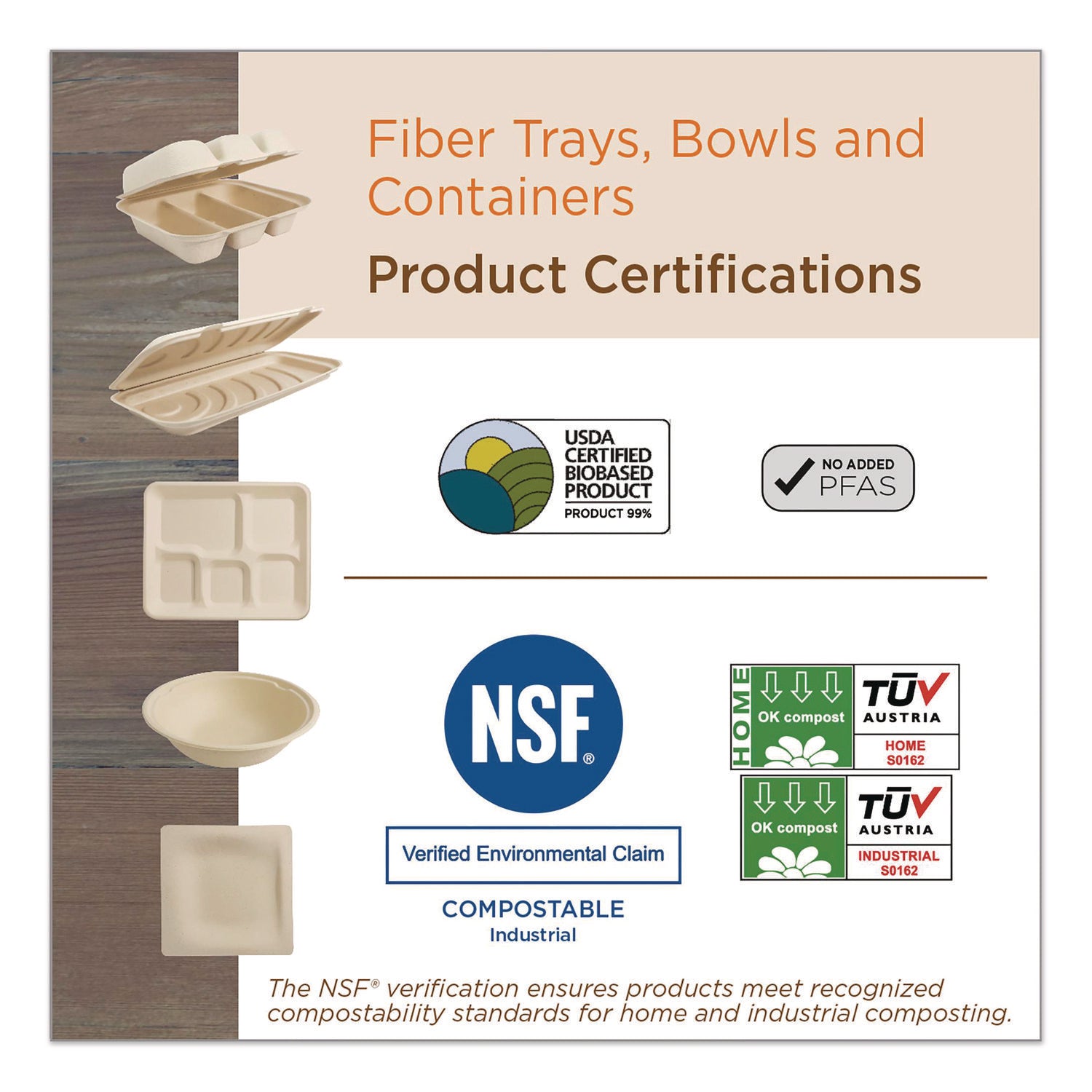 - Compliance Standards: NSF Industrial Certified Compostable; USDA Certified Biobased 99%
