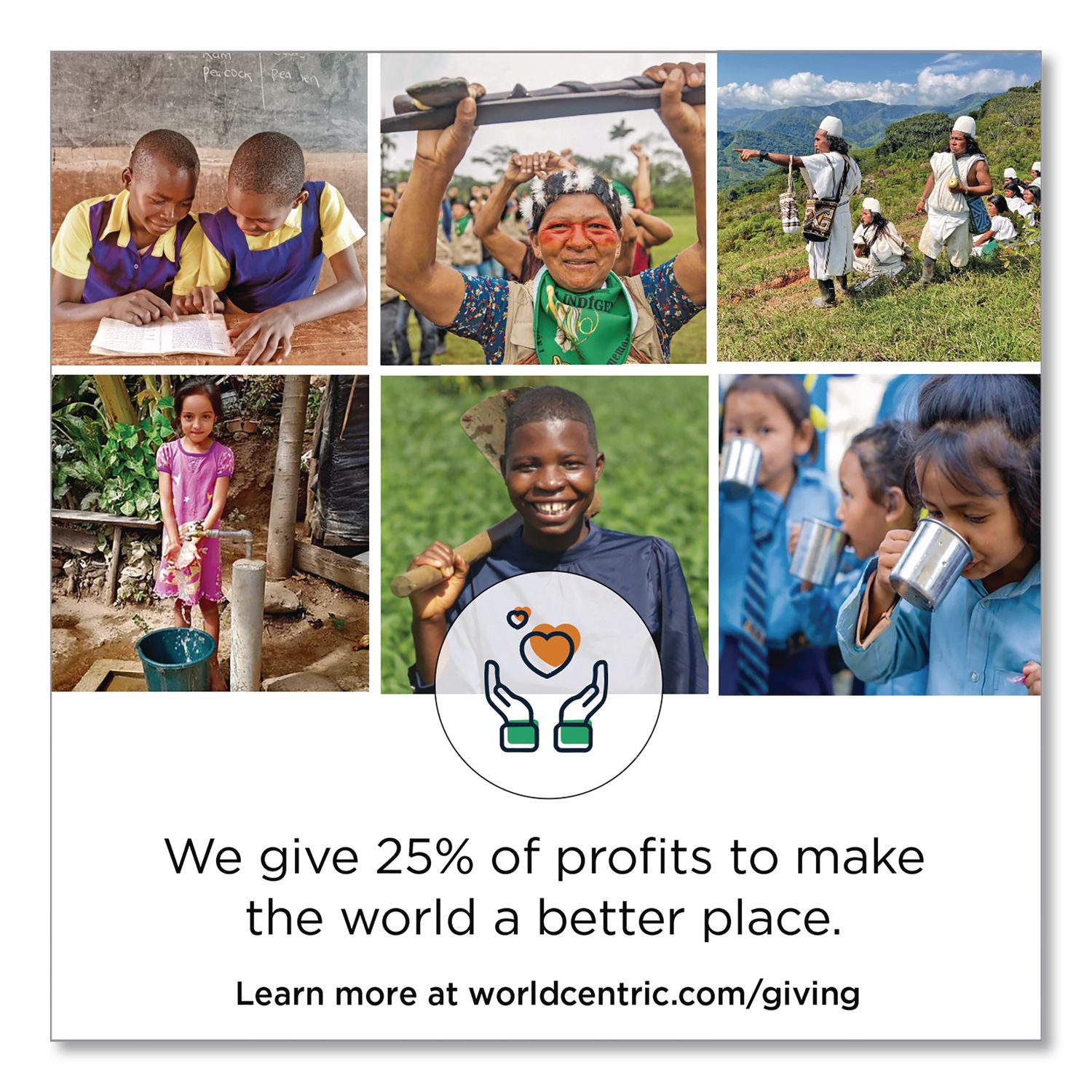 World Centric® compostable fiber plates are made from sustainable unbleached plant fiber with no added PFAS. Great for parties, picnics or takeout, these plates are durable, grease and moisture resistant, and gluten free. As a certified B Corporation, World Centric® is dedicated to upholding the highest standards of social and environmental responsibility, transparency, and accountability. We proudly give 25% of our profits to grassroots organizations driving global change. Choose World Centric® compostable foodservice products and make a difference today!